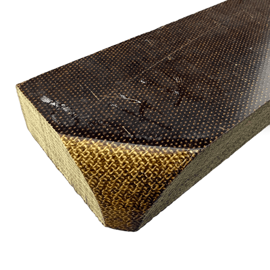 Our collection of both modern, and vintage canvas Micarta and phenolics.  Canvas Micarta is the most famous of the Micarta recipes.  It makes for a very grippy, very durable handle.  We sure think it looks great too!