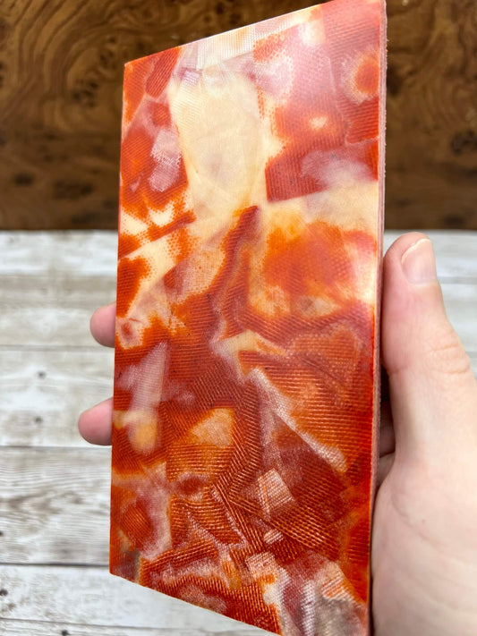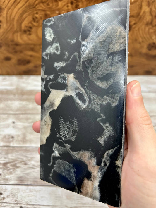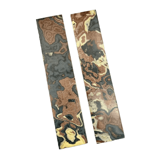 Beautiful, burl and rag Micarta! Layers of burlap, canvas, and/or linen cloth come together to make one of the most beautiful, sought after materials on the market!