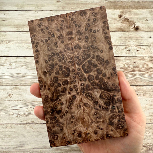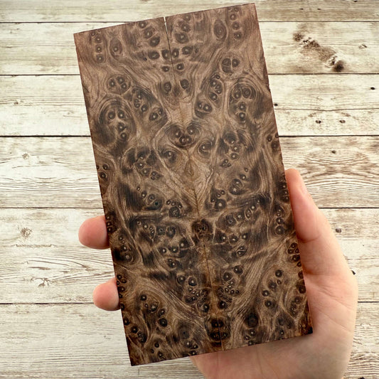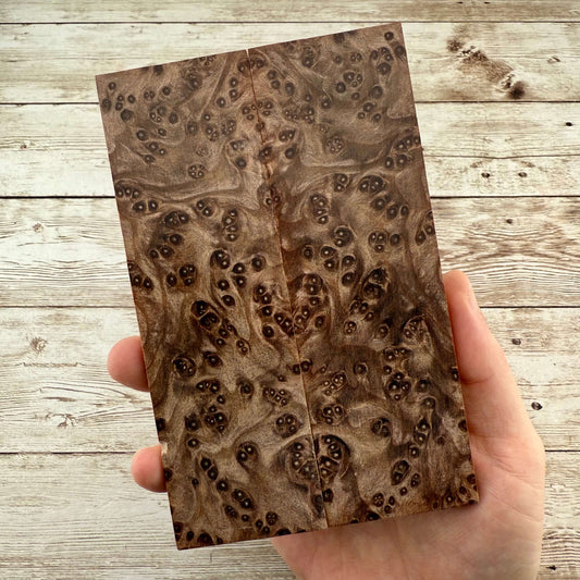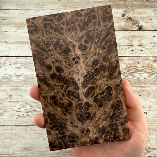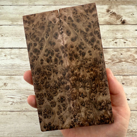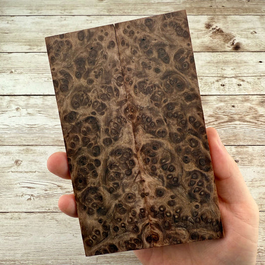 Beautiful, K&G stabilized redwood burl scales. Redwood burl is a staple here at Knife Handle Supply, and is one of our all time favorite woods to work with. We have a LOT more beautifully figured burl being processed, which will be added to the store regularly.