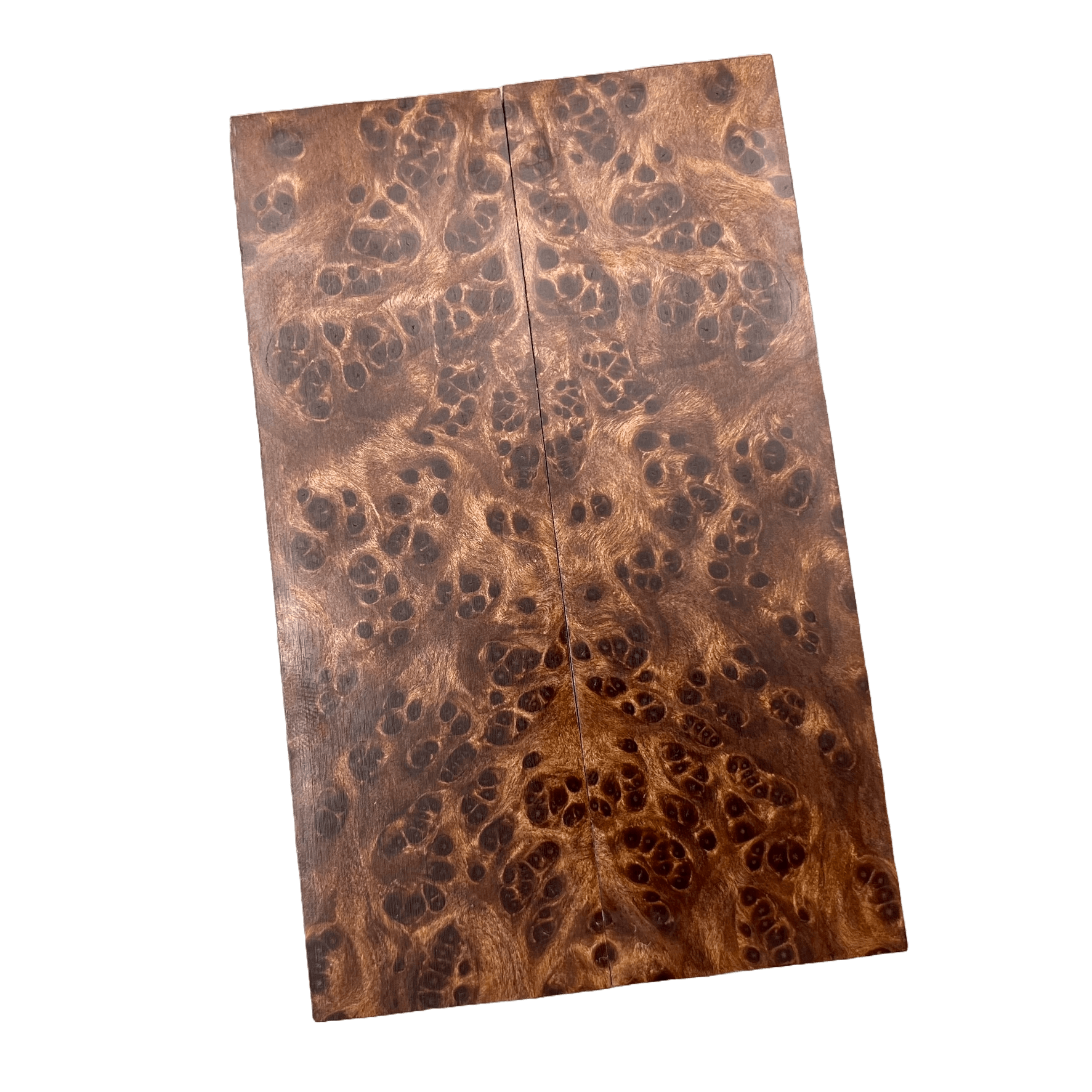 Gorgeously figured redwood lace burl scales with all kinds of eyes, and great chatoyance. Redwood burl is a favorite of ours here at Knife Handle Supply, and with proper stabilization, makes for one heck of a knife handle!