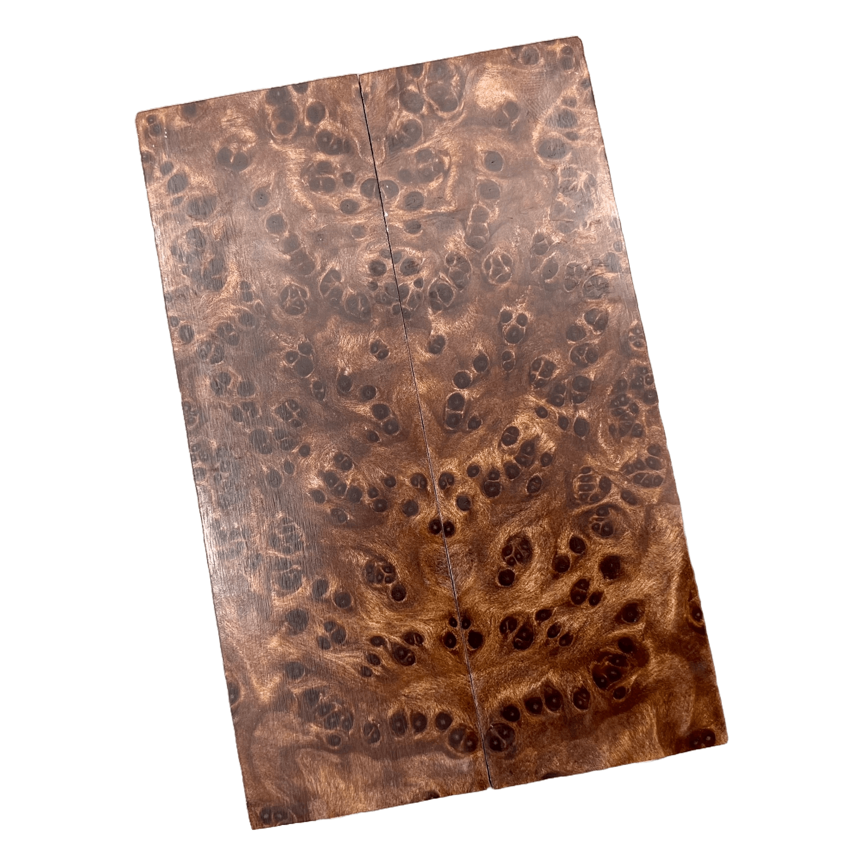 Gorgeously figured redwood lace burl scales with all kinds of eyes, and great chatoyance. Redwood burl is a favorite of ours here at Knife Handle Supply, and with proper stabilization, makes for one heck of a knife handle!